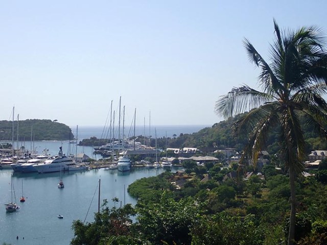 Next we stopped at a viewpoint overlooking Nelson’s Dockyard, which is one of the major tourist attractions of the island. It costs $15 to go in and sounded like mainly a shopping area so only a couple people paid to go inside. In the 18th century British naval ships docked there. Now the docks are full of fancy yachts. There is a museum and art galleries there as well as shops, a hotel, and restaurants. There is a park and trails outside of the dockyard.