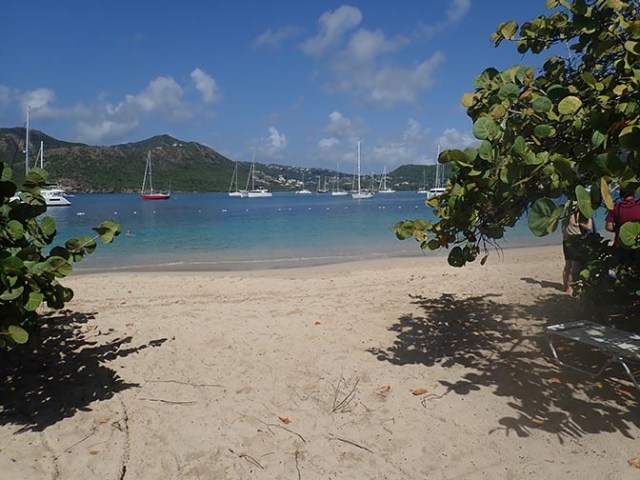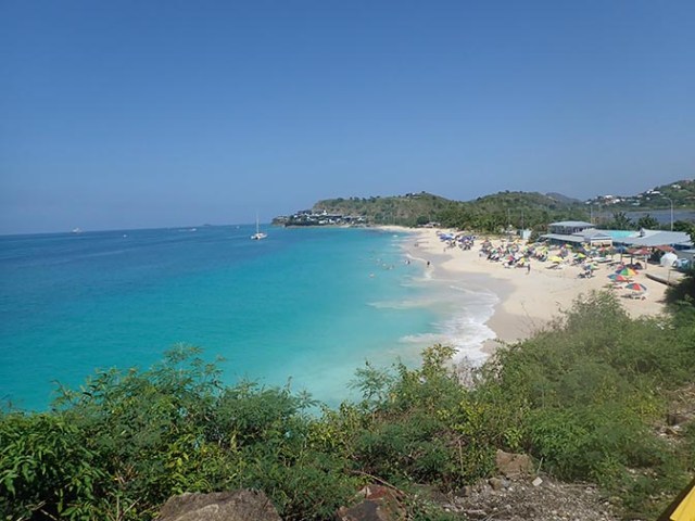 Meanwhile the driver took the rest of the people to a nearby beach. It was called Pigeon Beach. It looked like a nice beach and there was a sign there about a snorkel trail. The guide said it also had a hiking trail which went about 6 miles uphill to Shirley Heights, another of the places where a lot of the cruise ship tours go. It’s a former 17th century military lookout which is now a tourist site with food and entertainment and a cost to get in.