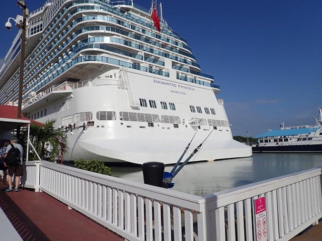 On our Caribbean cruise on the Enchanted Princess we docked in Antigua with nothing planned to do. The dock our ship was on exited directly into a port shopping area called Heritage Quay, though that was not the case for people we talked to from a Carnival ship whose dock went straight into town. The two docks are right next to each other with just a bit of water between the two ships so nothing is far away from one to the other. There’s also a third dock at that port and a bridge from where the Carnival ship was to the port shops.