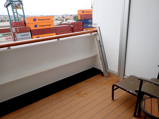view of shipping containers in the port in San Antonio, Chile from obstructed view balcony