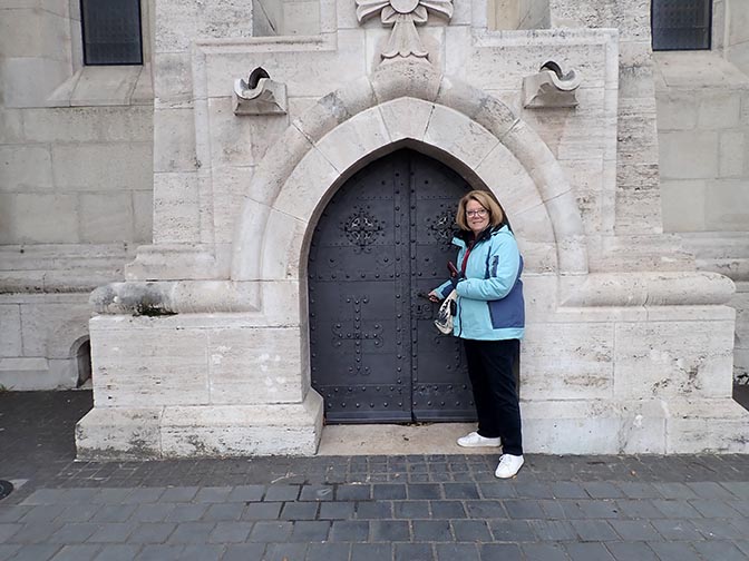 Karla by a tiny door in the castle