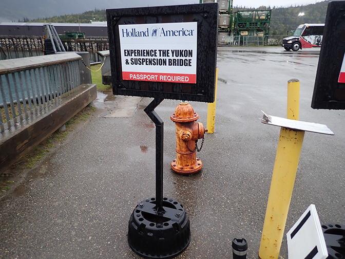 excursion meeting point sign – people checked in there, then went to the sheds to wait out of the rain for the bus to arrive