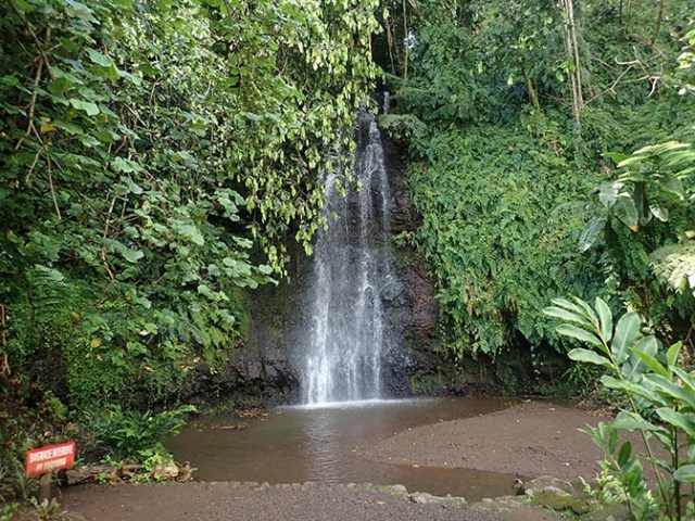 Next we saw the a brief glimpse of the Vaipahi Gardens, also called the Water Gardens of Vaipahi. A short path led to a small waterfall. There are several paths through the garden, but we only had time to see the waterfall. The garden has about 2.5 acres of trails with over 75 species of plants as well as ponds, bridges, and archeological relics.