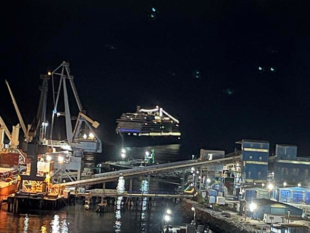 • The cruise terminal is within the container port. You can’t walk there because people aren’t allowed to walk through the container port. Shuttle busses from the airport in Santiago and from local hotels bring people to the terminal. The google map in the blog was done at the terminal.