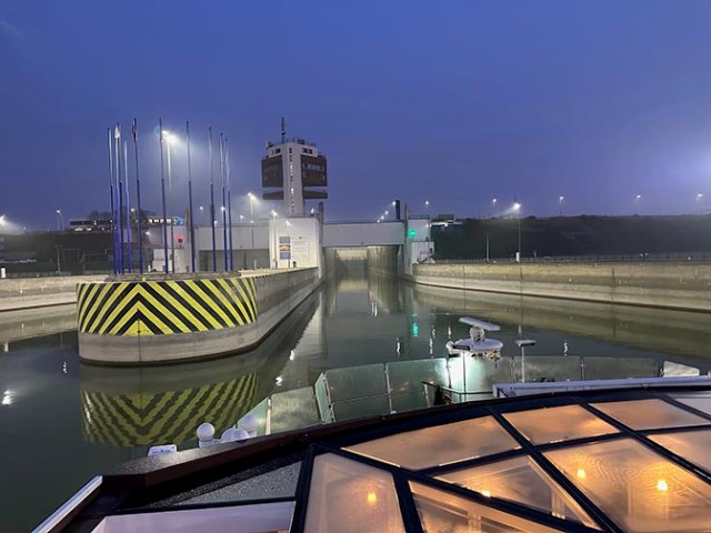 Early in our river cruise on Viking Skirnir we passed through a set of locks, the first of over 60 on the journey. We were told the first one was the largest lock of the entire journey.