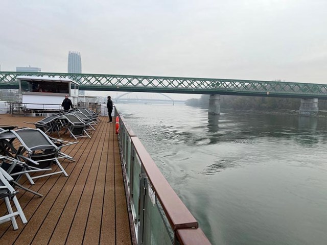 We passed under many bridges on our journey. The ones on the Danube were high enough for the Viking longship to pass under easily, but later in the journey there were some low bridges where everything on the top deck including the pilot house had to fold down in order to fit under them.