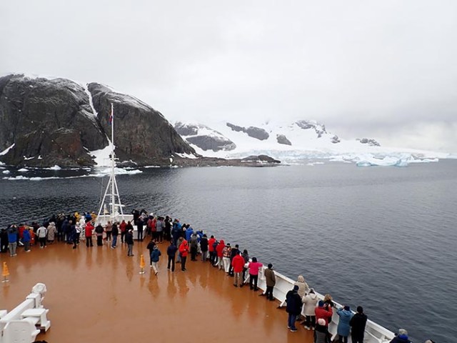 This room was located above the theater. We could hear the nightly shows through the floor if we were in the room during performances. We did not hear any of the daytime events in the theater, just the main shows of the evening. The other noisy thing was when it was windy outside it would whistle through where the balcony door didn’t quite seal shut even if it was locked. If it was really windy – which it often was on a cruise to Antarctica – we could sometimes hear the dividers between balconies rattling too.