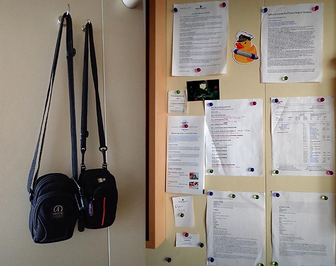 magnetic hooks and magnets to hold up paperwork come in handy on cruise ships