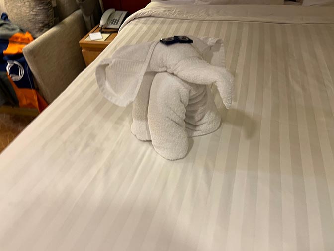 on formal nights the steward left towel animals with chocolates for eyes on Holland America Oosterdam
