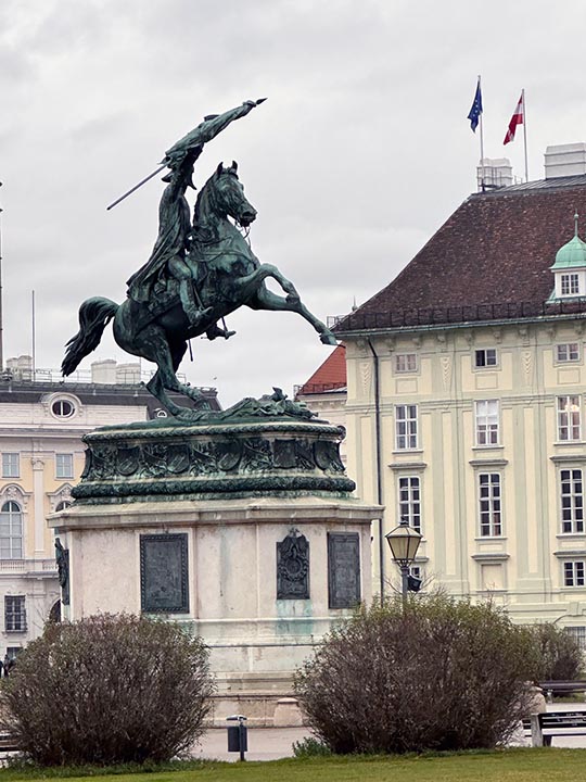 The Hofburg palace included many buildings and covered quite a large area of the town. One of the statues on the grounds of a rider on a horse was the first horse statue ever built that was balanced on only two of the horse’s hooves without using the tail or anything else to help hold it up.