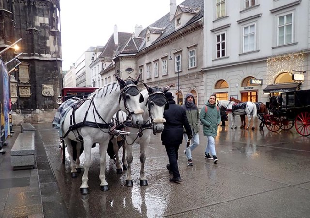 Near to there we saw several carts with two horses each waiting to pick up passengers. We asked a driver with two white horses if that was where the Lipizzan mares went since the nearby riding school only has stallions. He said his horses were indeed Lipizzans, but that only one of them was a mare, the other being a gelding. First time I’d ever heard of a Lipizzan gelding.