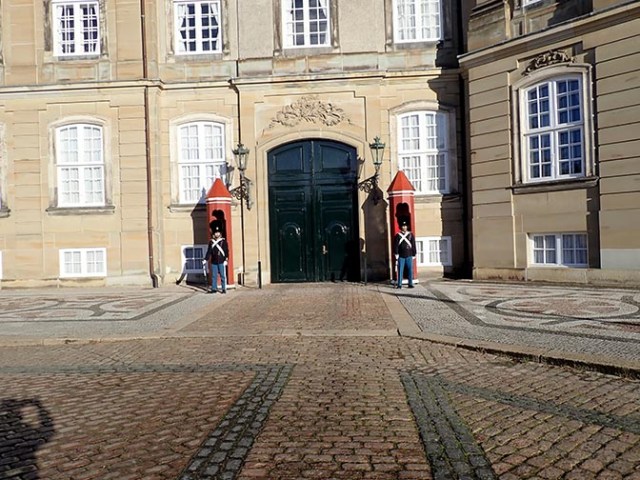 Later we came across the king’s palace when it was nearly time for changing of the guard so we stayed for that. They had two little rocket shaped booths at each door, one on either side. Only one door had two guards, and both booths were facing with the open end forward there. The other doors had one or no guards, with the back of one facing forward if there was just one, and both booths turned around for any door with no guards. These guards would alternately stand in front of their booth or march a bit away from it and back. They all did the standing and marching in unison regardless of how far their door was from any of the others.