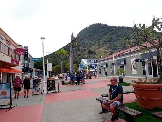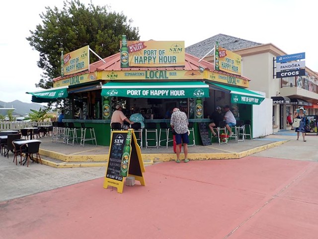 Water taxis are available at the port to take people across the bay into town where besides the nice white sand beach, there are shops, bars, restaurants, and a casino. There’s also a land taxi stand at the port where people can get island tours or taxi rides to other areas of the island, with Maho Beach being the most popular individual destination from there. For people who would rather walk than spend a few bucks for the water taxi, Phillipsburg is within walking distance of the cruise port. It’s about a mile to the center of town.