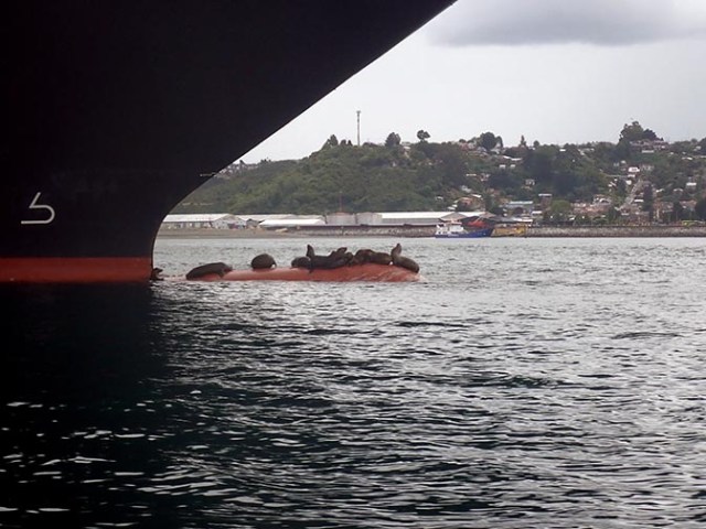 There were seals swimming around the ship when we first arrived. By the time the tenders came back from shore there was a pile of them resting on the ship’s bulbous bow.