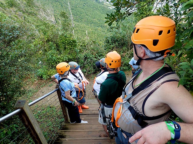 waiting to go on a zipline at Rockland Estate in Saint Martin