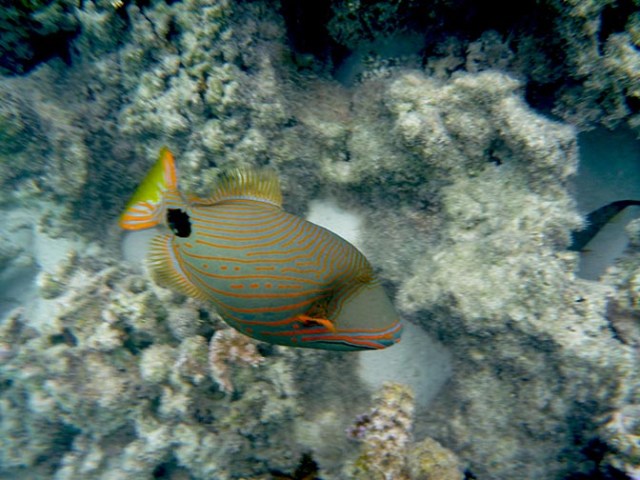 It took next to no time at all to drift back to the boat on the swiftly moving current. Swimming against the current definitely would have been easier with fins. I think they didn’t want people to wear them because so many of them stood or walked around instead of swimming and they’d be more likely to accidently step on the corals if they had all that fin sticking out beyond their feet. A lot of them had shoes on though so unless they were watching where they put their feet they could easily step on things without noticing.