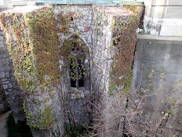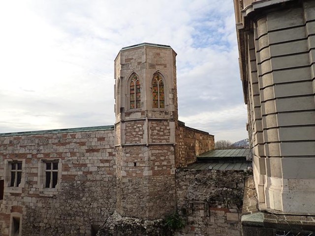 The top station of the funicular lets out at Buda Castle, which could be a destination on its own. It has sprawling grounds with views of the city all along the wall on the side above the Danube River. Besides the main palace buildings it had an older looking one with a tower that had stained glass windows.