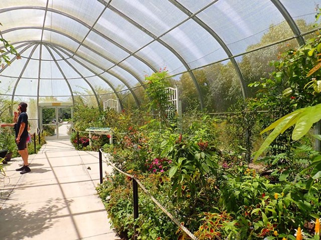 The butterfly conservatory hatches out butterflies and then has a greenhouse type space full of plants where they can fly around, but unlike most butterfly houses they don’t care if these escape since the goal is to increase the butterfly population for pollinating the fruit that grows within the gardens.