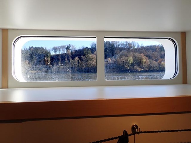 For anyone who can afford it, I’d recommend booking one of the above water cabins. They cost considerably more, but they do come with a great view and are a lot quieter. Sound travels through water so below the water you hear a lot of things that the above water cabins don’t. When underway as the ship often is at night you can hear its engines. The movement of the ship passing through the water is also loud sometimes. Even when it is docked you often hear sounds from passing ships. Some of the smallest boats passing by have the loudest engines. When the ship passes through locks at night you hear the water gurgling and a high-pitched sort of whistle or ringing that may go on for quite some time, then the whooshing sound of water rushing in or out. Occasionally there’s the crunch of the boat bumping a wall in the lock too. Above the waterline unless there’s daylight and you happen to look out the window at the right time it’s easy not to even notice passage through the many locks along the journey, but in the below-the-waterline cabin it doesn’t matter whether you can see anything or not, you will know. These cabins do make the journey more affordable though.