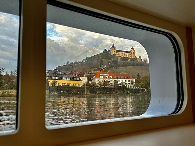 Main River view through window of standard cabin on VIking Longship Skirnir