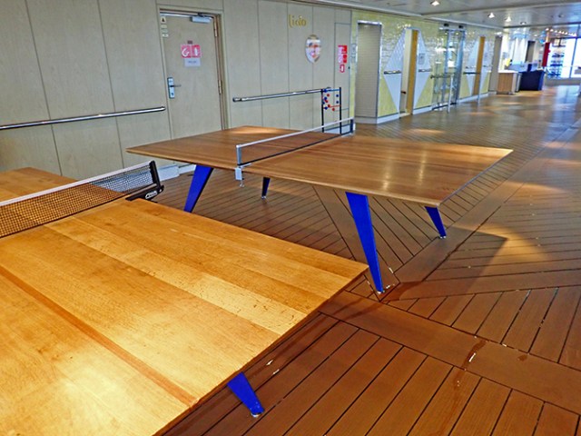 Even a small ship like the Zaandam has some built-in things people can do. It has pools, hot tubs, a library with books and games, ping-pong tables, deck chairs, the Crows Nest observation lounge and other places with views, and a promenade deck that goes all the way around the ship.