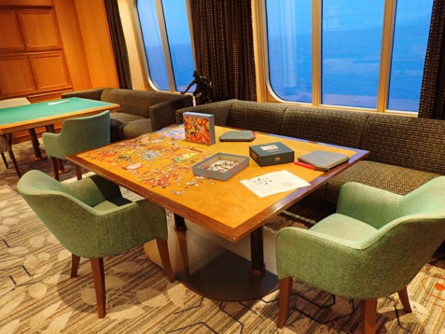 It’s always nice to sit somewhere near a window with a good book where you can read and watch the scenery go by. I have the kindle app in my phone so I always have lots of books without actually bringing any, but for those who didn’t bring their own they had a lot of them in the library. It was in the Explorer’s Lounge, which also had view seating, a computer room, a coffee bar, lots of games, and tables where people could spread out the games or puzzles which were also available there.