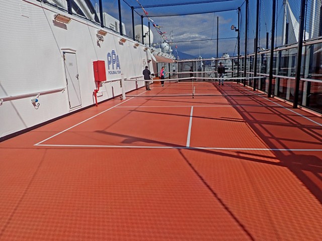 It also had a sports court with basketball and pickleball. There’s a casino too and some bars. Most things at the gym are free to use, though there are classes that cost extra. The ship has a spa too, but other than things like sample massages or a boarding day spa tour everything there costs extra.