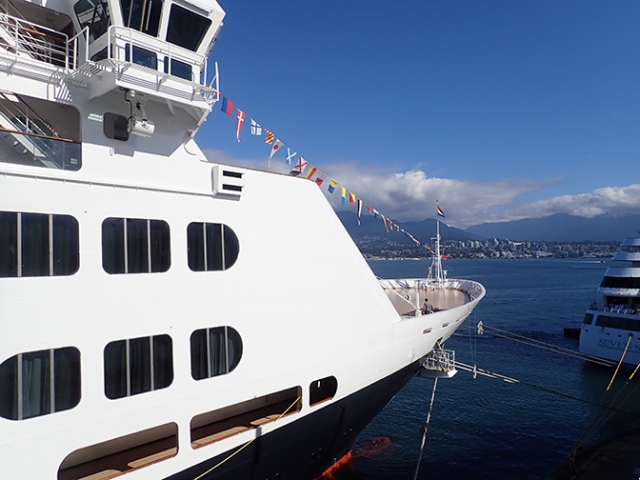 Movies and shows are available on the stateroom TV. It also has a bow channel if you want to see where the ship is going from the comfort of your own stateroom. Otherwise you can get a great forward view from inside at the Crows Nest or outside on the little open bow accessed from the port side of deck 6 that is open even when the main bow is not. There were also places with window seating on the sides of the ship. Most of the time we were sailing through scenic areas, and sometimes there was wildlife to see as well – which included whales, orcas, porpoises, and of course birds.