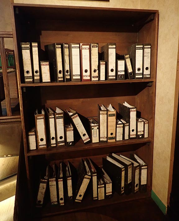 A revolving bookcase hid the entry between the annex and the business below. On the lower floors the warehouse extended into the annex building beneath the previously unused upper floors where the families were hiding. Most of the people working there had no idea about the hidden people so they couldn’t make any noise or run any water during the day while the business was open. They also could not look out the windows or have any light show through to the outside at night so that nobody would know they were there.