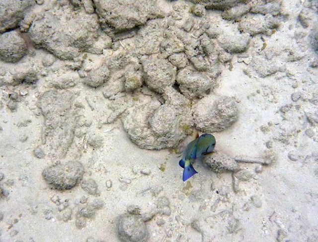It’s free to put a towel on the beach to sit on, and to swim in the roped-off area allowed for swimming. If you have your own gear you can snorkel there for free too. If not you can rent it at the beach. There’s not much in the way of coral, just tiny bits here and there. There is a lot of rocky structure though, and fish like structure. Near shore the fish are small, but out deeper they get bigger. The biggest ones are out beyond the area where people are allowed to go.