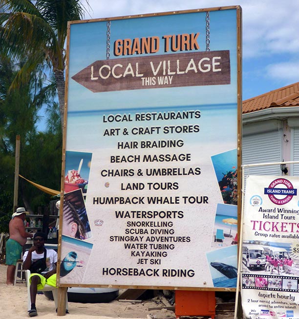 On our visit to Grand Turk on the Enchanted Princess we hung out at the beach, which turned out to have the best snorkeling of that trip. The water was nice and clear there so the fish were easily visible. The next time we went to Grand Turk on the Nieuw Amsterdam there were some trampoline things in what had previously been the best snorkeling area so the snorkeling then was pretty limited. On the plus side there were more free beach chairs that visit, but all of them were out in the sun.