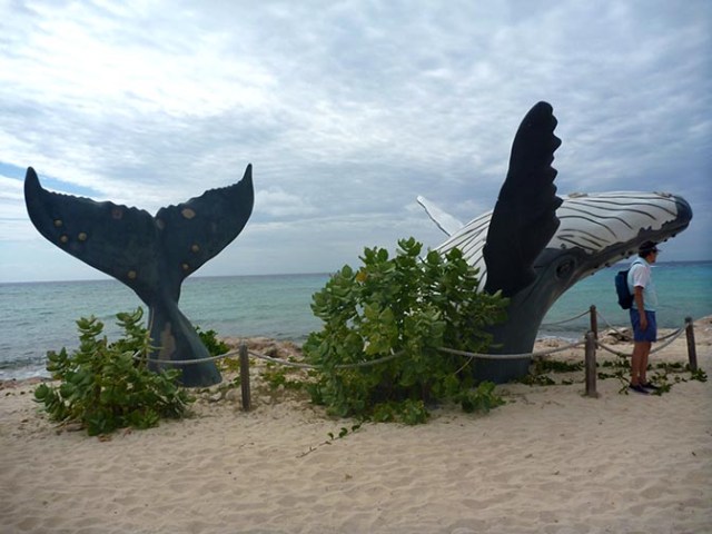 There’s also a whale statue on the beach. Most people pose briefly for photos with it then go someplace else, but the guy in the picture stood there obliviously forever so I gave up on him ever leaving and took a photo anyway.