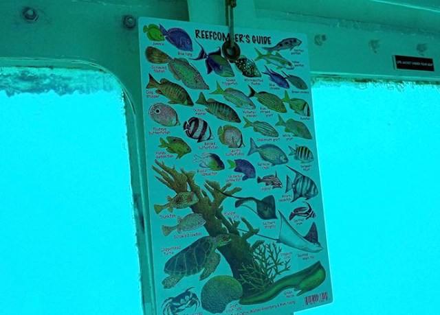 Near the end of our time in the semi-sub a turtle swam close enough for us to see it. It was clearly visible, but a bit too distant for cameras or phones to get a decent photo of it. Then our time there was over and we had to take the ladder-like stairs back to the surface and wait for the boat to arrive and return us to shore.