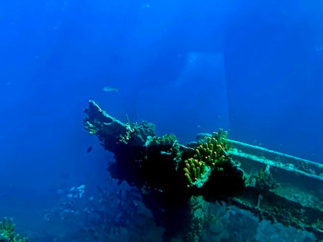 There were lots of fish near the wreck and sponges growing on it. Also lots of people snorkeling, though they were in a slightly different area of the wreck than the semi-sub. The divers and snuba people came closer since they were at or near the bottom rather than on the surface. The snuba people would need to watch for boats though since their air is surface supplied. They did not get close enough for the semi-sub to interfere with their equipment.