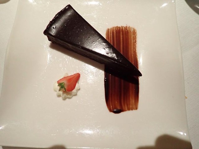 For dessert the Thanksgiving selection was pumpkin pie while the Austrian one was Sachertorte, an Austrian chocolate cake. I ordered the Sachertorte and everyone else got the pie. The torte was delicious, very moist and fudgy. They all thought the pie had too much nutmeg. I might have liked it though. I like nutmeg.