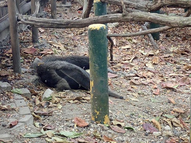 We saw a couple of giant anteaters in a large pen, but only because one of the park workers we passed by on the wooden walkway pointed to their pen and made it plain there was something worth seeing there even though we couldn’t understand much of what he said since it was all in Spanish. They were hard to spot. When we finally found them, they were asleep looking a lot like logs.