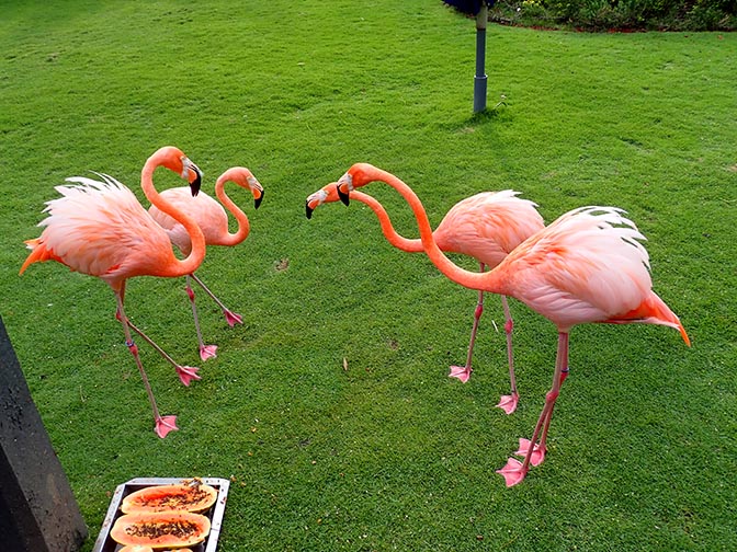 flamingos squabbling over food at the cruise port eco-park in Cartagena, Columbia