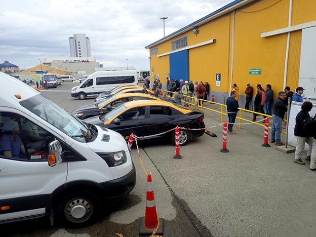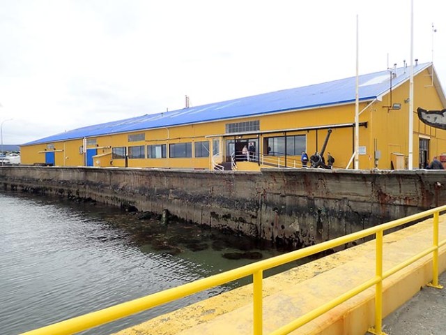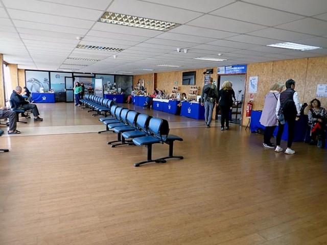 The terminal building was big enough to have a couple large rooms, one filled with local merchants. The other had check-in booths for small expedition ships that start their cruises from there on the really expensive sort of adventure cruises where they have zodiacs that take people to shore in Antarctica. There were also restrooms available in the port building. Apparently the signage was not clear to everyone because one of the men from our cruise ship went into the ladies room without even realizing that’s where he was.