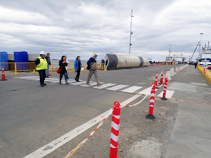 walking from the dock to the port terminal building