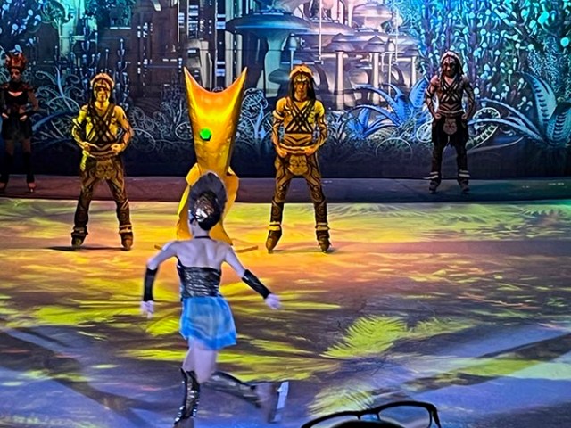 In addition to having a couple of open skating sessions during our cruise where passengers could skate in the ice arena, it also is the theater for an ice show. Besides all the fancy skating the show also has a bit with a flock of lighted drones – which have to be tuned into the ship itself because they can’t do precision flying in a moving ship on normal GPS. The ice arena was also sometimes used for laser tag. There is definitely no shortage of things to do on Symphony of the Seas.