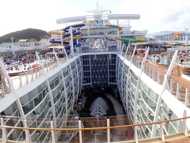 Central Park is an open area within the interior of the ship that has gardens with real live plants in the center and shops, eateries and a bar around the edges. Inside cabins on decks above Central Park have balconies overlooking the park so on this ship you can book an inside cabin and still have a balcony. We had one of those on Wonder of the Seas and liked it quite a lot.