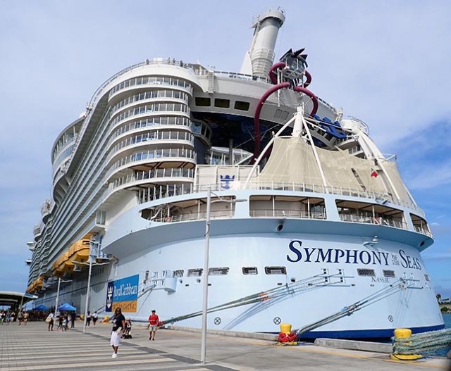 Symphony of the Seas can carry over 6000 passengers and more than 2000 crew. It has 18 decks of which 16 are accessible to passengers. Tonnage is 230,000 and length 1,188 feet. Its maximum width is 215.5 feet. It has 2759 passenger cabins, some of which hold more than 2 guests including some that can hold up to 6.
