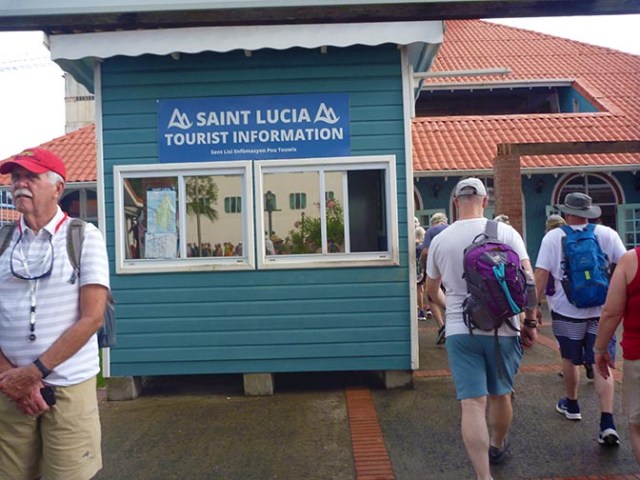 Saint Lucia is an independent country, but also a member of the British Commonwealth. It’s a volcanic Caribbean island in the Lesser Antilles with reefs, rainforests, and waterfalls. The capital is Castries, the official language English, and currency the east Caribbean dollar. Annual rainfall varies around the island, with more falling to the interior than on the coast. Temperatures are from the mid 70’s to the high 80’s F. Ships dock in Castries with larger ships generally docking at Point Seraphine in Castries Harbor. According to the internet it’s a 20-minute walk from there to Castries. The other dock is La Place Carenage, right in Castries. Ships may also tender at Pigeon Island, Rodney Bay, or Soufriere.