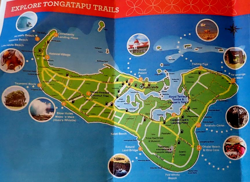 map of tourist attractions on the island of Tongatapu in Tonga