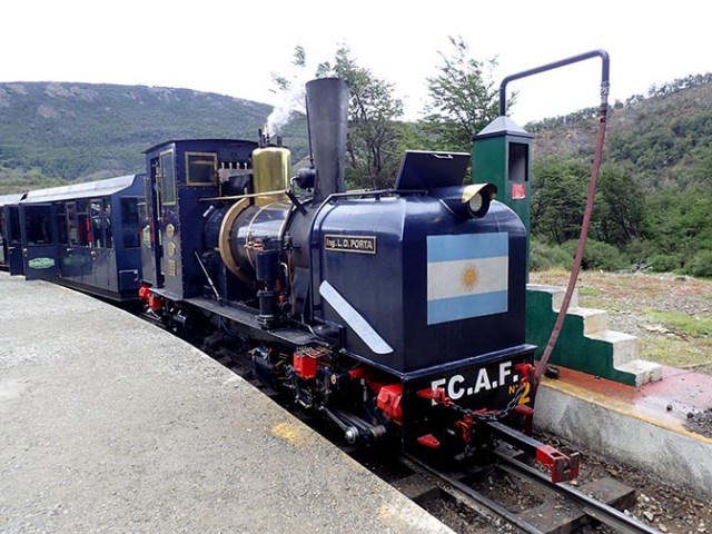 The trains run on a narrow gage track. The railway line originally extended from the prison that is now a museum out to what is now Tierra del Fuego National Park. It was used as a work train taking convicts from the prison out to the forest to chop down trees. Wood from those trees was initially used to build the town and then to provide fuel for heating and generating power. Before building the town the convicts had to build their own prison. Since they were in a harsh climate far from anywhere escape would most likely lead to death.