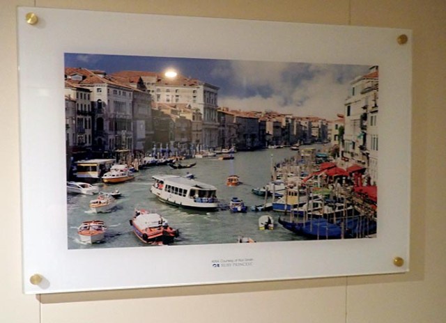 Hallways in the cabin areas have scenic photos themed to that deck with nearly all of the ones around a deck being from a similar location like Europe, China, Australia, or Alaska. Stairways also have photos, but not of the theme that the cabin hallways have.
