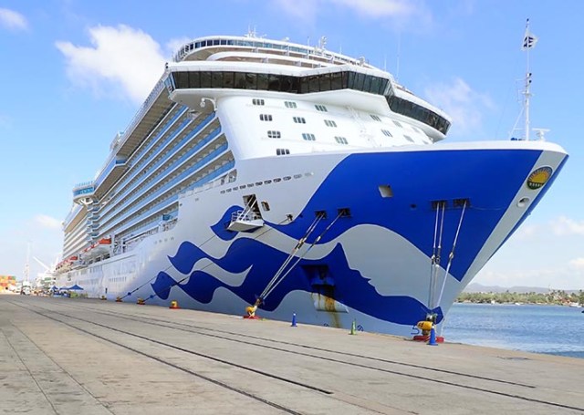 Other outside space includes deck 17’s adults only retreat area with a pool, hot tubs, and deck chairs. Most of the retreat area is free to use, but the chairs in the little cabanas cost extra as does the entire pay-extra sanctuary next to it. There are some additional hot tubs on that deck in other areas. Indoor space at the back of deck 17 houses the fitness center and kid’s clubs for various different ages. There are additional small sun decks with deck chairs on the next two decks up. Most cruise ships have the spa and fitness center near each other, but on this class of Princess ship they are on different decks as well as on opposite ends of the ship.