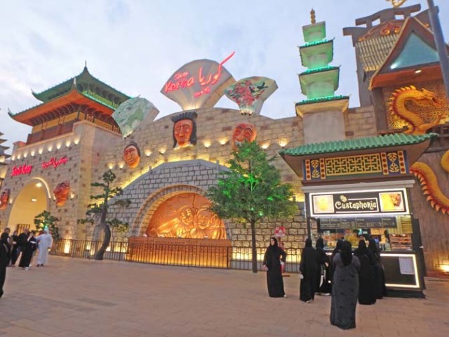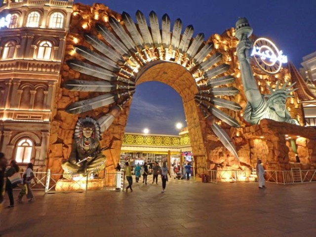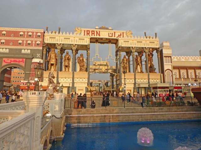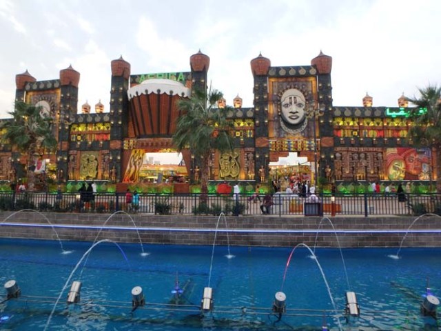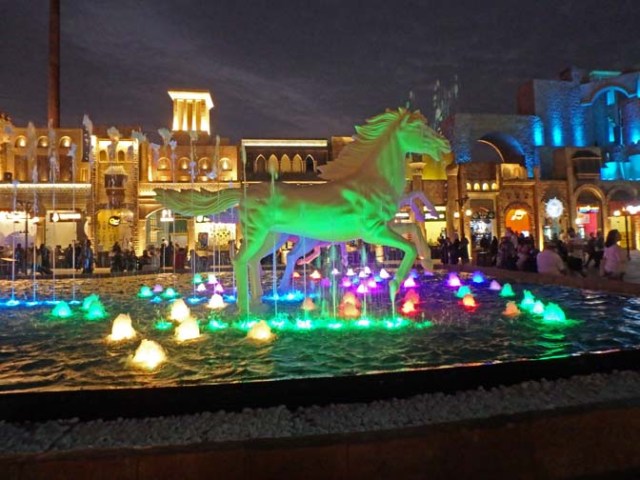 There’s a parklike area next to the mall and in front of the Burj Kalifa. A good section of it is filled with water and a fountain. There are fountain shows periodically throughout the day.
