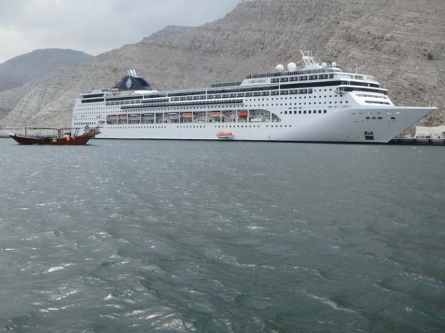 The Boardwalk area is an open space at the back of the ship on deck 6. It is open to the sky and to the stern, other than the AquaTheater, which sits at the back end of the boardwalk blocking most of the view out the back. The show at the AquaTheater is quite impressive and definitely worth seeing. At the other end people enter the boardwalk area as they exit the interior of the ship through big glass doors.