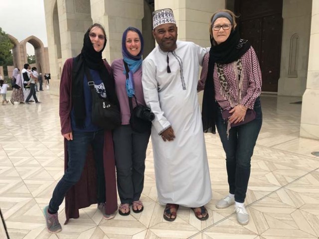 Going with the theme, even though it’s standard to take masks off for photos, we had quite a few with them on. Being as there were 3 of us wandering about the ship in masks the 3 mask-ateers seemed like a good nickname for the group. Since none of us are all that photogenic and the mask hides a photo-ruining expression they were helpful in getting photos where we all look OK. Like the times when you start out with a genuine smile, but by the time they get around to clicking the camera it’s gone to a forced expression and the mask hides that. All the photographers used the same 4 poses and it wasn’t until the very last one we finally found someone who would allow other poses besides facing forward, group hug, hands on hips or facing toward or away from each other. We got really tired of those same poses over and over again. Sometimes we traded places. Here I’m in the middle, which as the middle sister I often was. The dining room photos were a bit different being seated, but they always came by while we were having salad and then took them pretty quickly, often while somebody was still running their tongue around their teeth inside their mouth trying to make sure there wasn’t any lettuce hanging out between teeth, which really makes for a really bad photo so most of those didn’t turn out well.